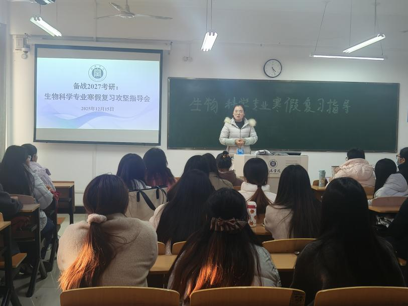为帮助2027届生物科学专业学生明确升学备考方向,掌握高效复习方法,充分利用寒假黄金备考期,12月15日下午,理工学院生物科学专业精心组织的寒假复习攻坚指导会在理工楼505顺利举行,会议由余倩云老师主持,2027届有考研及学业提升需求的学生参会,现场学习氛围浓厚。