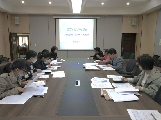 为进一步深入贯彻落实新时代全国高等学校本科教育工作会议精神,扎实推进本科教学审核评估整改工作,5月13日下午,理工学院化学教研室在理工楼会议室201召开2022届化学专业毕业论文工作总结会,会议由化学教研室主任张秋平主持,化学教研室全体教师参加。