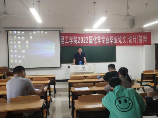 4月28日,理工学院化学教研室2022届化学本科专业毕业论文答辩工作顺利开展。本次答辩对象为2018级化学本科专业全体同学。毕业生论文答辩在实训中心417、理工楼303、理工楼601和理工楼608教室分批分组进行。参加此次论文答辩工作的有理工学院副院长李晓严副教授、教研室主任张秋平博士、姚素梅教授、鲁辉教授等化学教研室全体教师。