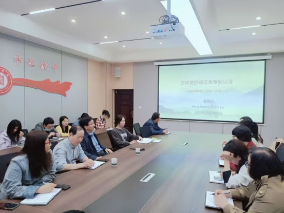 4月16日下午,信阳学院教师教学发展中心主任孟宪乐教授应邀在理工学院201会议室,作了题为《怎样做好师范类专业认证》的报告。理工学院院长肖生发、党总支副书记张红梅、教学副院长李晓严和理工学院师范类专业全体老师参加了本次报告,报告会由李晓严主持。