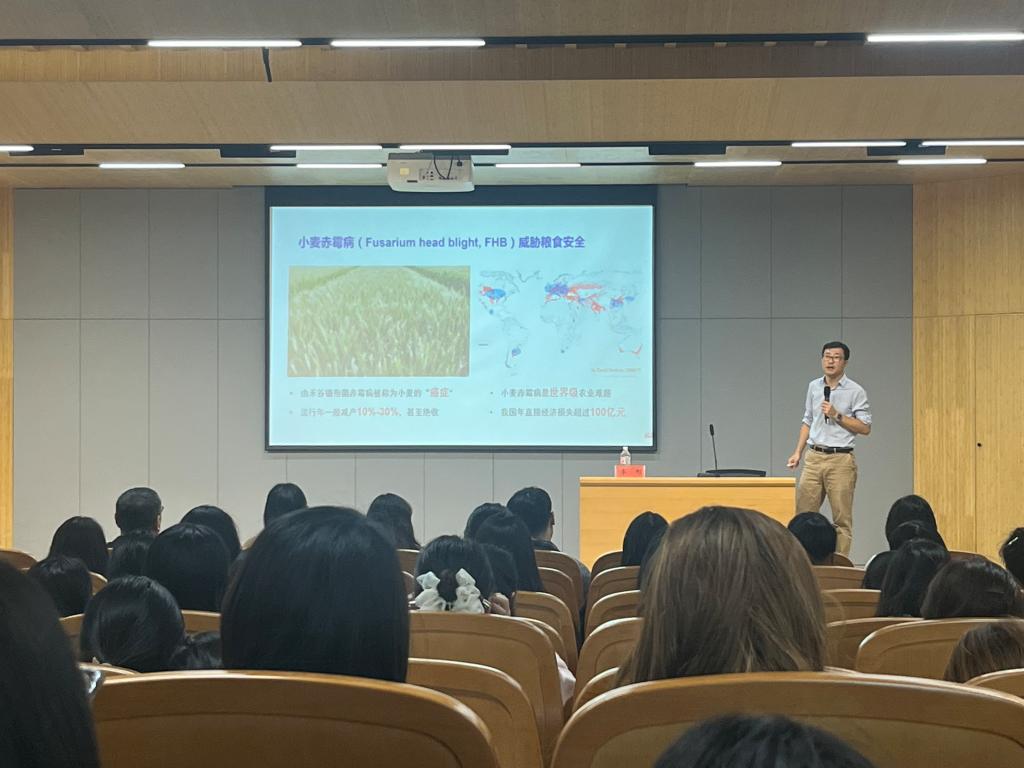 报告中,李刚教授系统阐述了作物抗病生物学领域的前沿进展。他指出,面对全球气候变化与病害频发对粮食安全带来的严峻挑战,深入解析作物与病原菌互作的分子机制,是实现抗病育种突破的关键。李教授重点介绍了植物免疫受体识别病原菌、激活防卫反应的核心信号通路,以及其团队在关键抗病基因挖掘与功能验证方面取得的系列创新成果。他强调,随着基因组编辑与合成生物学等技术的飞速发展,通过多学科交叉融合,设计与培育兼具广谱、持久抗病性与高产优质的“智能”作物,已成为未来农业发展的核心方向。讲座内容系统深入,案例丰富,极具前瞻性与启发性,为我院相关专业的人才培养与科研创新提供了宝贵思路。