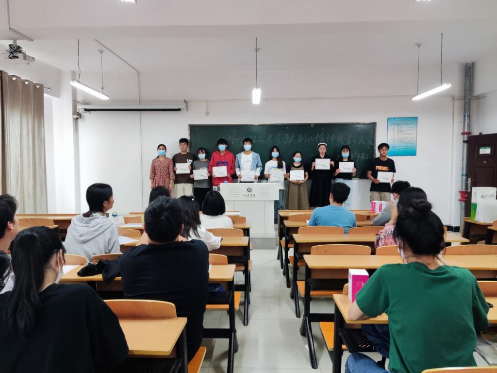 党总支副书记张红梅,大别山精神学习传承社副社长杨晓杰分别为获奖学生、班集体、联络员、学生干部和优秀指导老师颁奖。