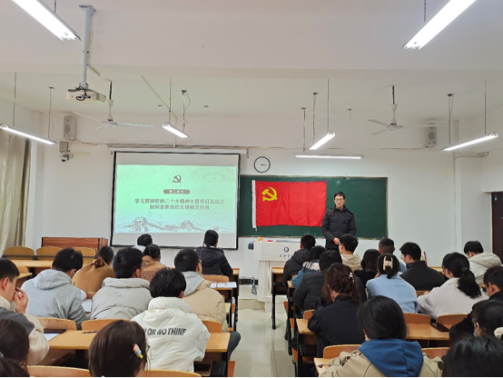 第二环节是杨晓杰围绕“学习贯彻党的二十大精神之如何发挥的党员先锋模范作用”主题与大家进行交流讨论。他希望全体毕业生党员,要以优秀共产党员为标杆,自觉用习近平新时代中国特色社会主义思想武装头脑,不忘初心,牢记使命。最后,他希望同学们都能自觉行动起来,在接下来的学习工作、生活以及后续毕业生离校的方方面面,以身作则,发挥党员先锋模范带头作用,推进班级和学院各项工作的进行,展现理工学院党员同志的良好精神风貌。