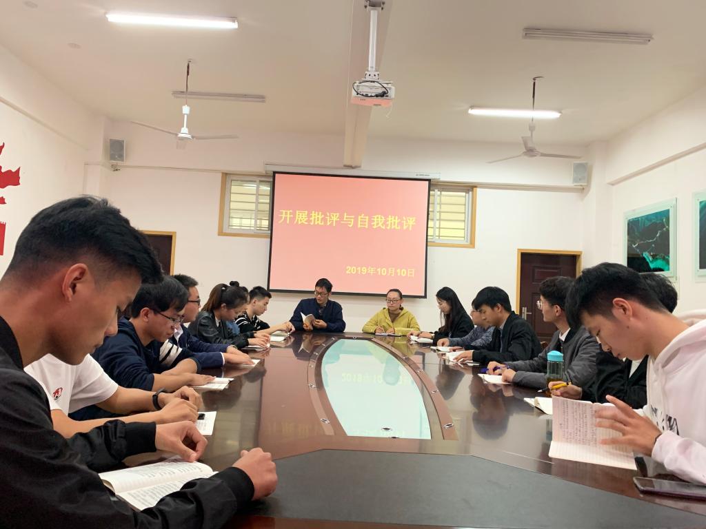 10月10日,信阳学院理工学院学生第一党支部在理工楼201会议室开展了批评与自我批评专题讨论活动,本次会议主要是为了进一步发扬党的优良传统,对支部党员的自身问题进行对照改正。会议由支部书记杨晓杰、副书记张帆和学生第一党支部支部全体党员参加此次会议。