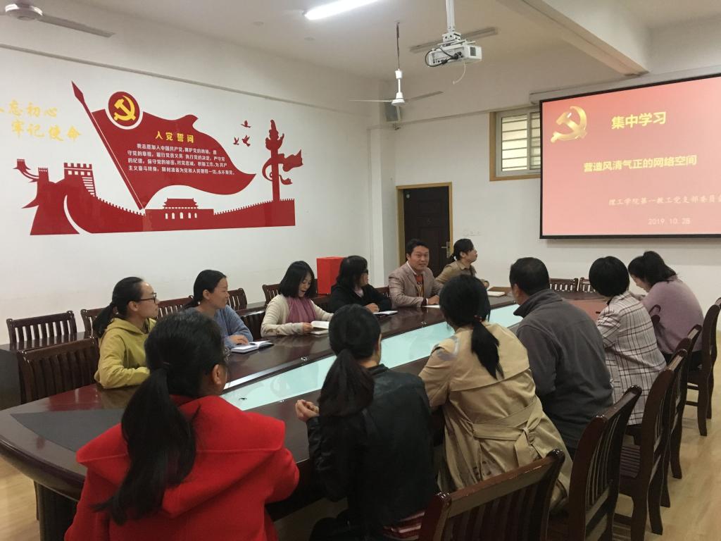 10月28日,理工学院第一教工党支部全体党员集中学习了《习近平新时代中国特色社会主义思想学习纲要》。围绕“营造风清气正的网络空间”进行学习研讨。