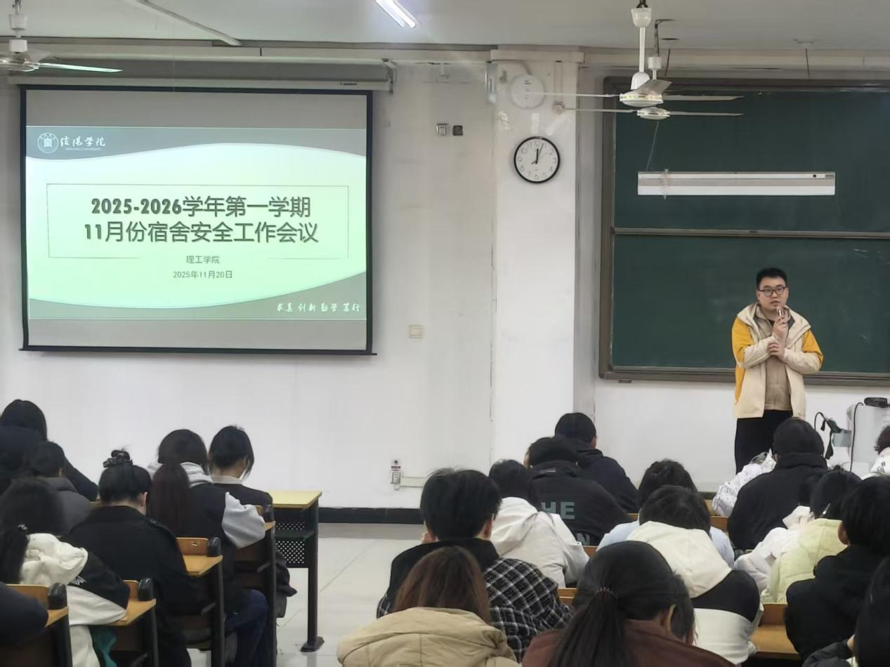 为进一步夯实宿舍管理基础,筑牢校园安全屏障,11月20日中午,理工学院在人文楼108开展了2025-2026学年第一学期11月份宿舍安全会议。此次会议23级普本和24级普本所有宿舍长参会并认真学习,由宿舍管理负责人杨康强老师进行讲解。