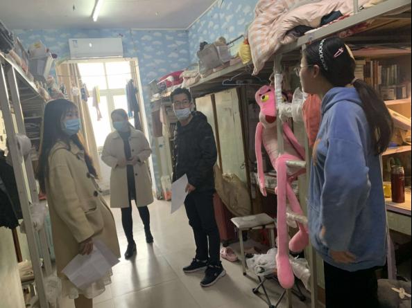4月1日下午,理工学院党总支副书记张红梅、学工秘书杨晓杰及全体辅导员教师开展理工学院第六周走访学生宿舍工作。