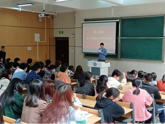 会议首先由第十五届团总支、学生会主席团成员张龙飞同学宣读《理工学院团总支学生会章程》,并总结了院学生会在上一学年的工作表现,对部分表现优秀的学生做出表彰。接着由徐国文老师对第十五届学生会的工作发表指导讲话,介绍接下来一年的工作计划,需要开展的活动,鼓励大家共同努力,顺利的开展接下来的工作,把理工学院学生会打造的更加辉煌。最后,党总支副书记张红梅发表重要讲话,对大家工作的努力和付出表示肯定,同时也指出我们自身的薄弱环节,要求大家把工作重心放在对不足之处的建设上,做好当下、展望未来。