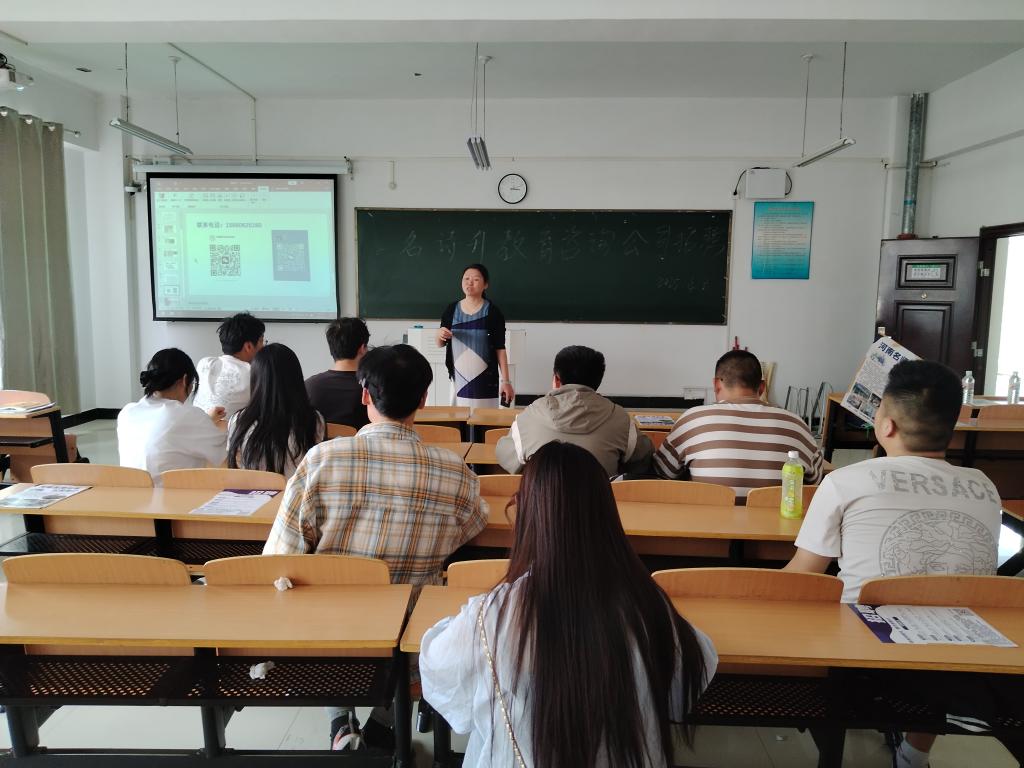 为了更好地拓宽毕业生的就业渠道,构建毕业生与用人单位的交流平台,做好2025届毕业生就业服务工作。4月9日下午,理工学院在理工楼502教室举行名诗升教育咨询有限公司专场招聘会,毕业班辅导员甘玉锋及全校部分毕业生参加了招聘会。