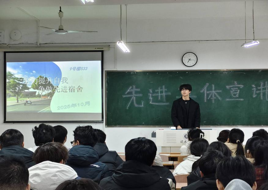 宣讲过程中,优秀班集体和优秀宿舍代表结合自身成长经历,倾情分享了集体在团结协作、创新实践与攻坚克难中的鲜活案例与宝贵经验,深刻诠释了荣誉背后既有无悔的付出,更有科学的方法。他们勉励同学们珍惜韶华,潜心钻研、勇于拼搏,以实干彰显青春担当。