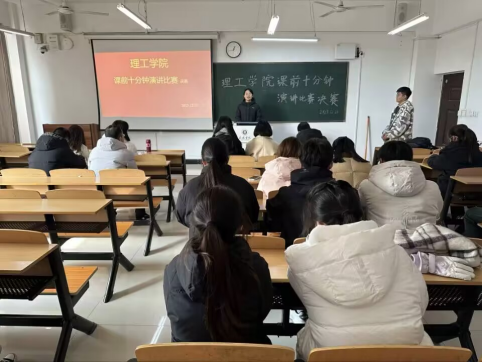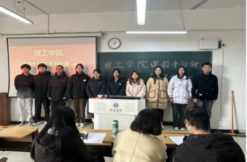 为加强理工学院学风建设,形成良好的学习风尚,理工学院于2023年12月21日,在理工楼教室举办课前十分钟演讲比赛(决赛)。