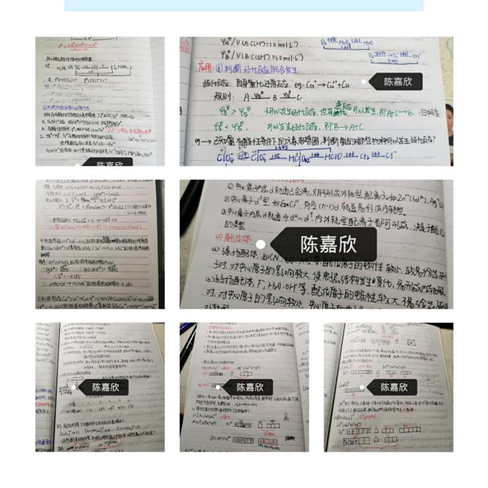 老师在直播平台也依旧像在教室一样,同学们认真听讲,也同时做好笔记。来看看陈嘉欣同学的笔记吧。